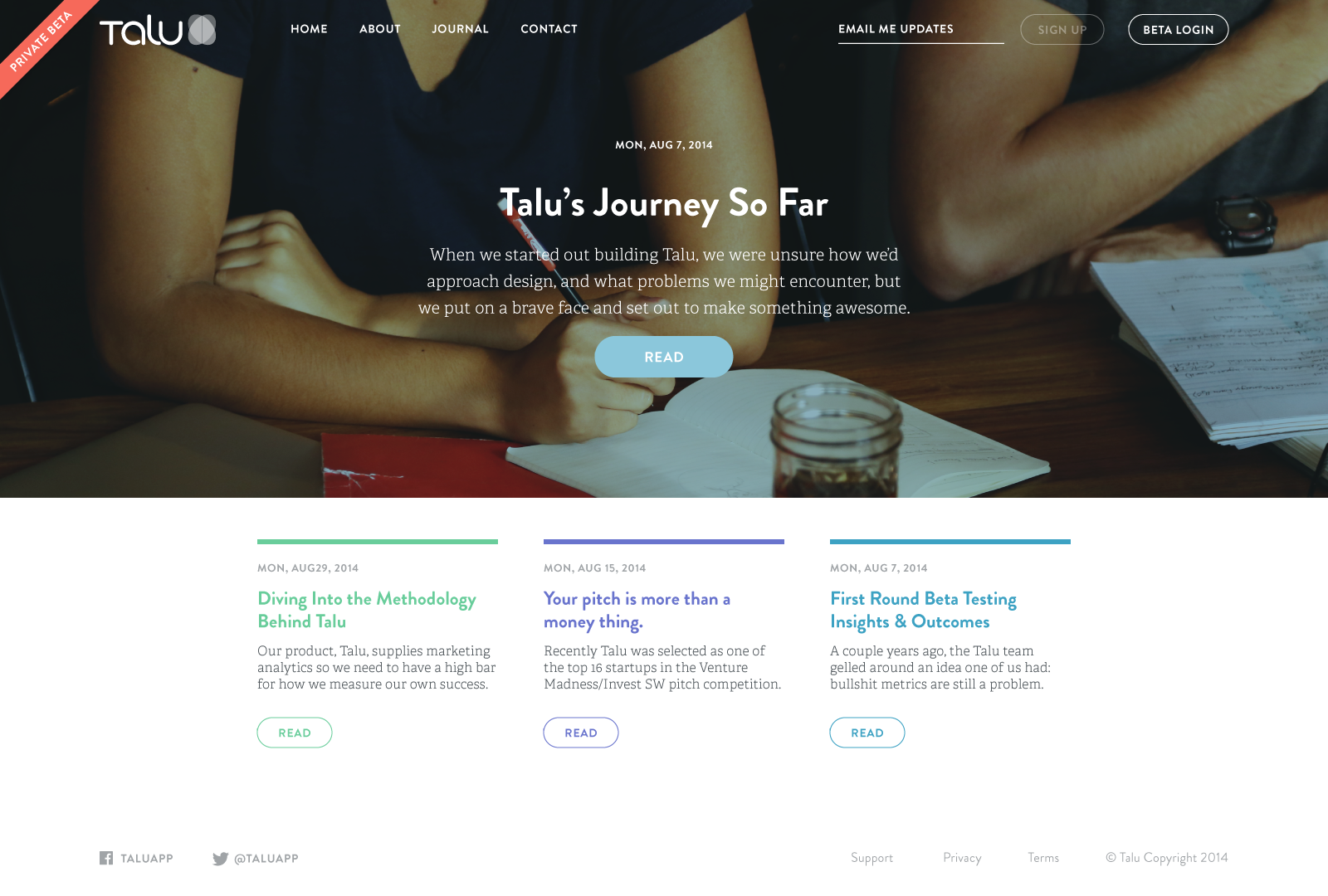meltmedia identified a problem in analytics tools, and sought to solve it: human, easily digestible reporting that requires a few easy clicks. Talu is a simple online monitoring tool that turns social media metrics and Google Analytics into stories and is currently in beta.