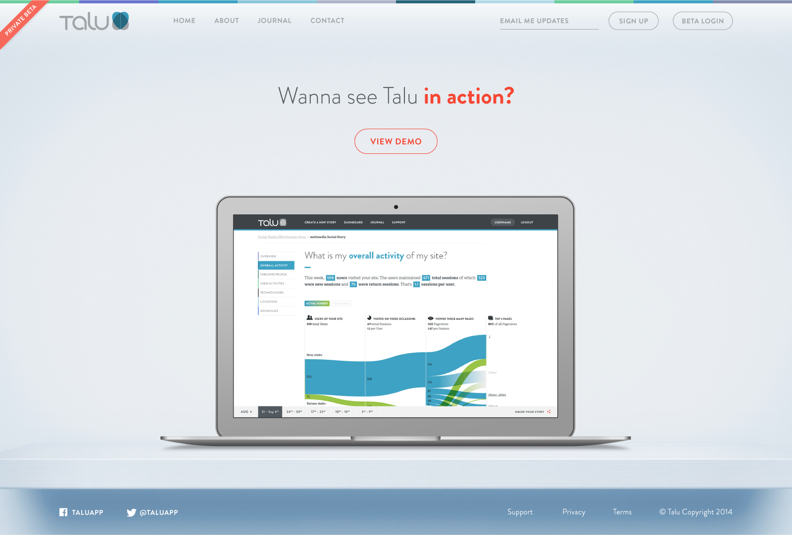 meltmedia identified a problem in analytics tools, and sought to solve it: human, easily digestible reporting that requires a few easy clicks. Talu is a simple online monitoring tool that turns social media metrics and Google Analytics into stories and is currently in beta.